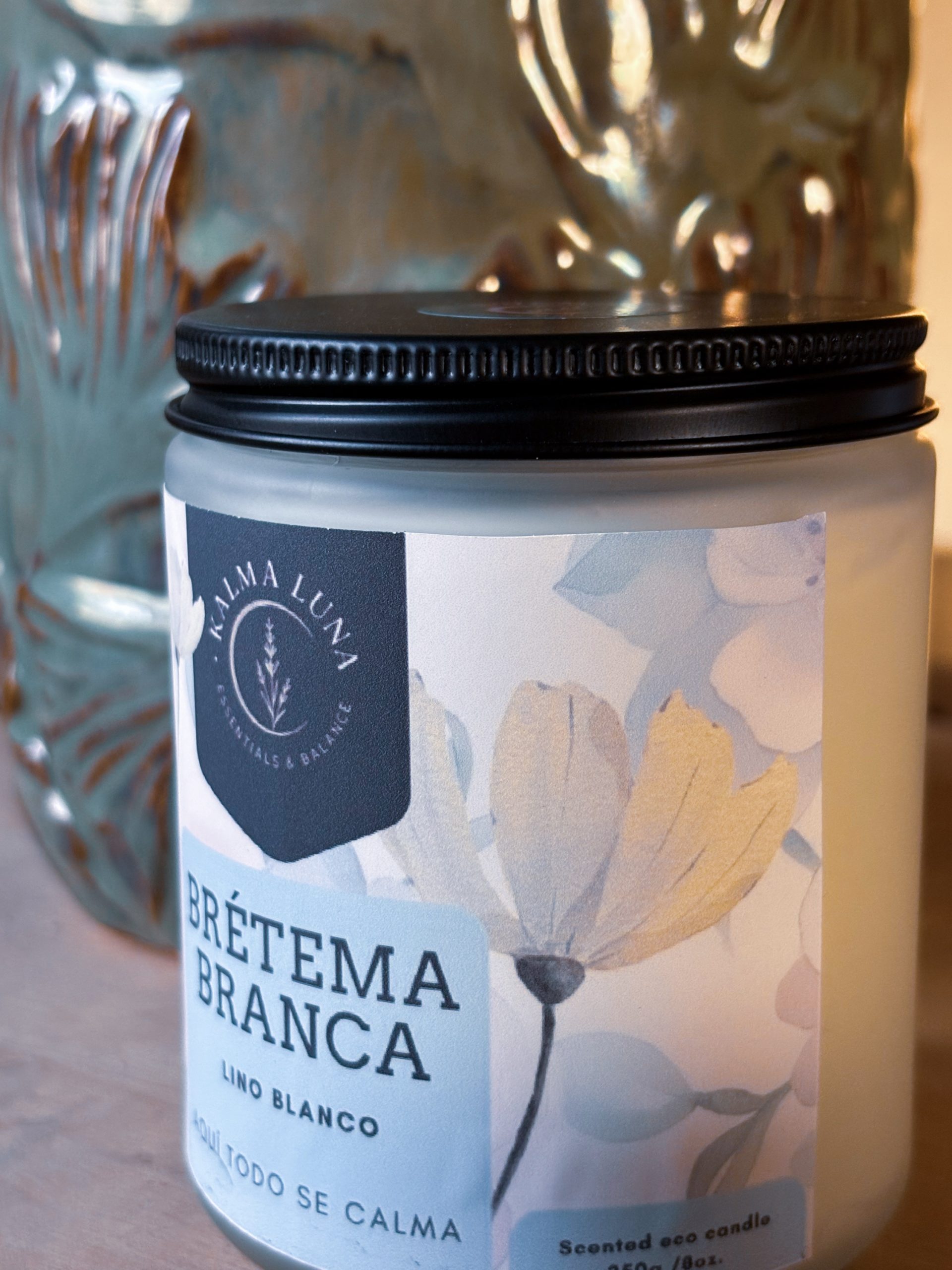 El placer de las sábanas limpias y el aire puro. Brétema Branca es frescura en estado puro. Con su aroma a lino blanco, esta vela transforma cualquier estancia en un refugio de paz y orden. Un diseño minimalista y botánico que encaja en cualquier rincón, recordándote que la verdadera felicidad reside en las cosas más sencillas. Huele a limpio, huele a hogar. Consigue tu momento de claridad con Kalma Luna.