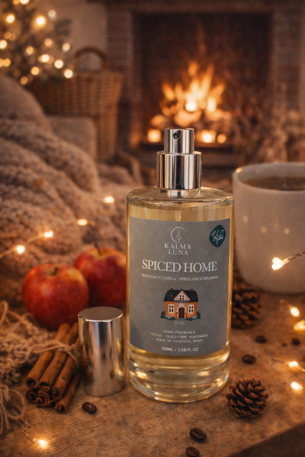 Spiced home es una bruma aromática para el hogar 100% natural, creada para transformar cualquier rincón en un refugio cálido.