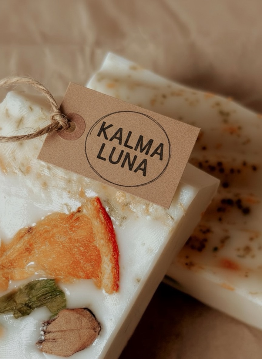 El Jabón de Glicerina de Naranja y Manzanilla de Kalma Luna está elaborado de forma artesanal con glicerina vegetal, aceites esenciales y botánicos naturales. Una combinación única que limpia suavemente la piel mientras la hidrata y la calma, convirtiendo la rutina de higiene en un momento de cuidado consciente.
