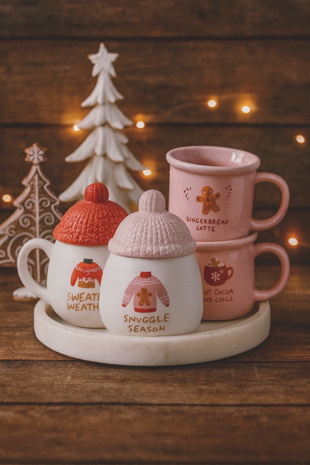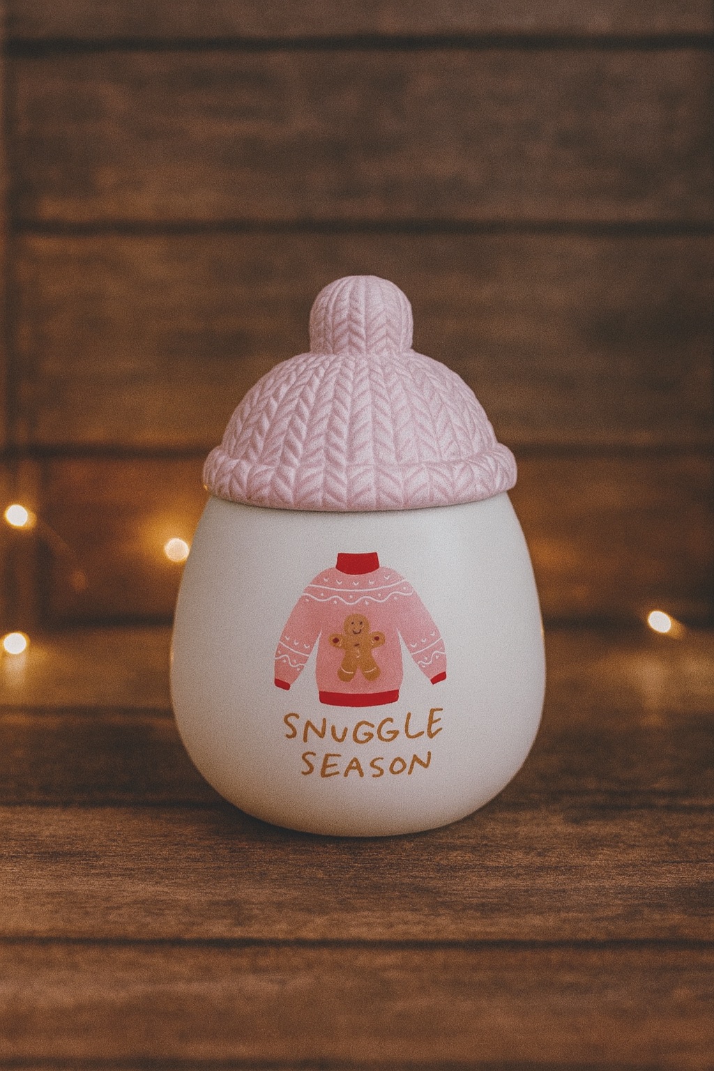 El Quemador Snuggle Season es la pieza más acogedora de la temporada. Inspirado en los días fríos de invierno, combina el encanto de un diseño navideño con la calidez de la cerámica artesanal. Su tapa en forma de gorro tejido y el detalle del jersey con galleta de jengibre lo convierten en un accesorio ideal para disfrutar del aroma y la decoración al mismo tiempo.