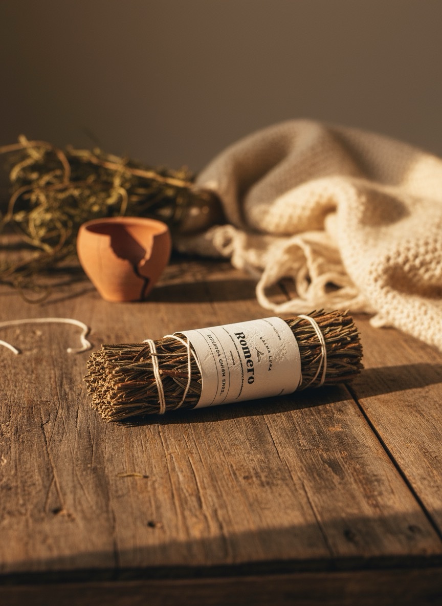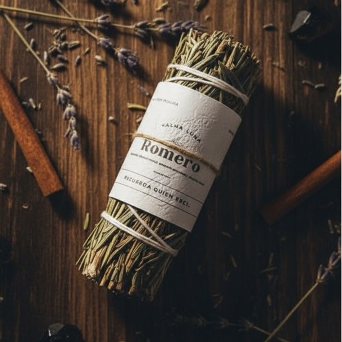 El romero ha sido usado desde tiempos antiguos como planta protectora y limpiadora. Su humo es seco, firme y cálido. No viene a complacer: viene a ordenar.