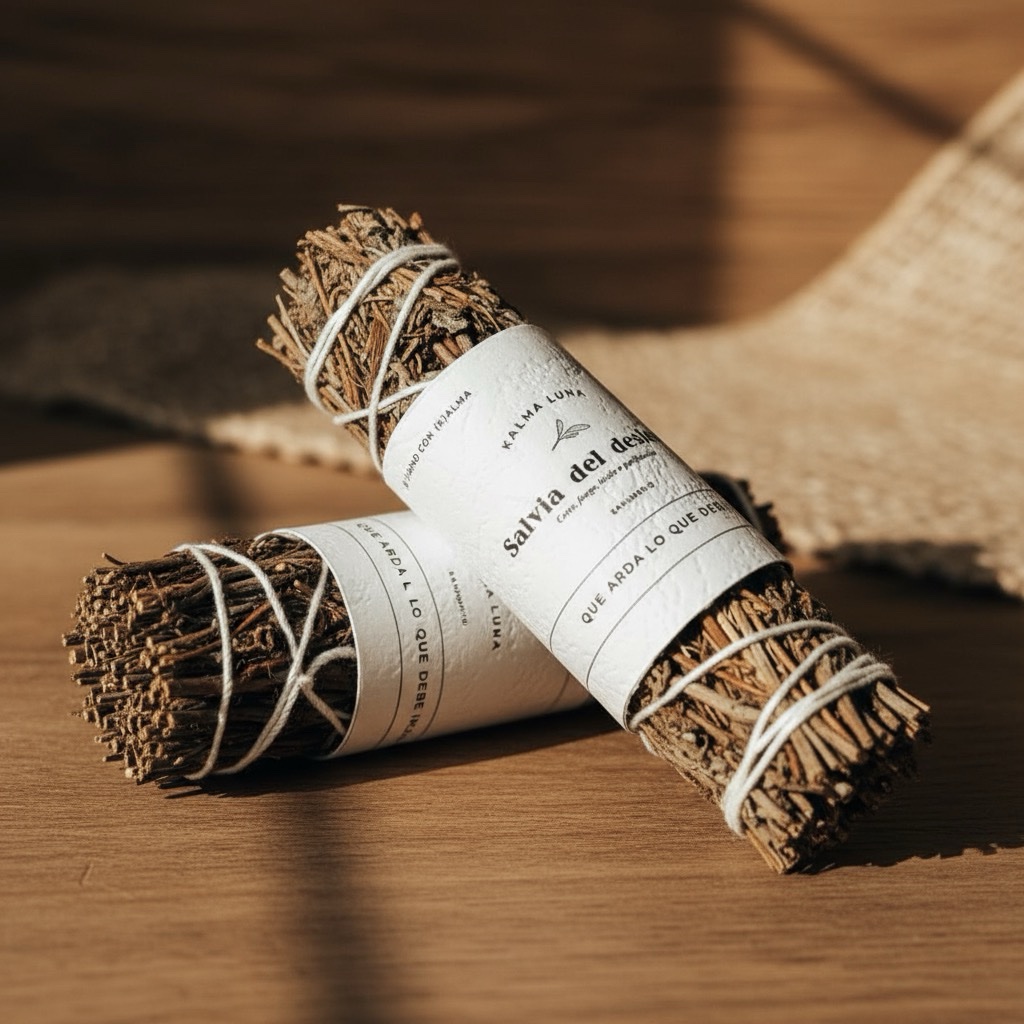 La salvia blanca del desierto ha sido usada ancestralmente para cortar la energía densa, disolver pensamientos repetitivos y abrir espacios para lo nuevo. Su humo no embriaga, libera.