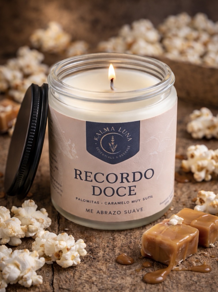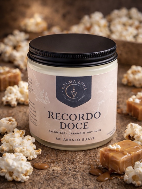 Recordo Doce nace de esos momentos sencillos que se quedan para siempre: una tarde de sofá, una peli de fondo, risas suaves, una manta compartida. El aroma de las palomitas dulces y templadas lo envuelve todo con una sensación de hogar inmediata.