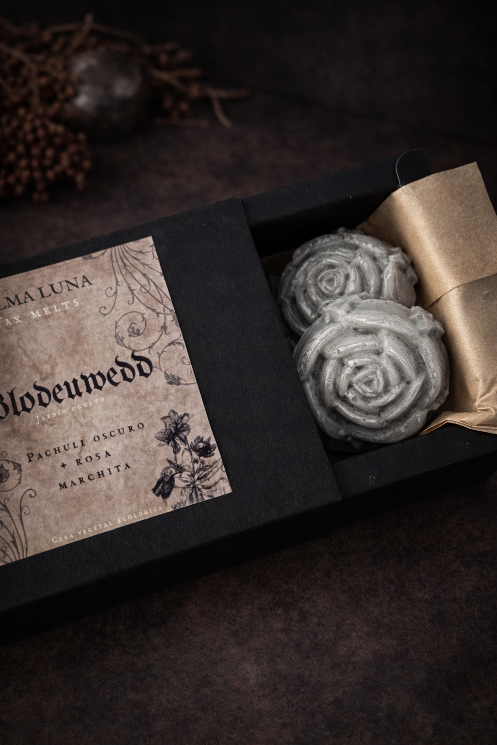 El pachuli oscuro envuelve el espacio con una sensación cálida, terrosa y ligeramente dulce, mientras la rosa marchita aporta un matiz elegante, nostálgico y casi hipnótico.