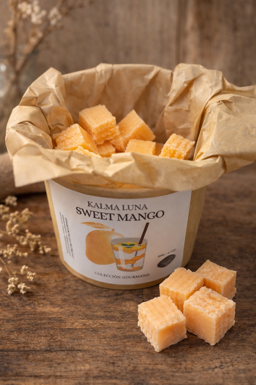 Sweet Mango es fruta madura, jugosa y ligeramente cremosa. Un mango dulce y natural que llena la estancia de energía suave y optimismo, sin resultar pesado.